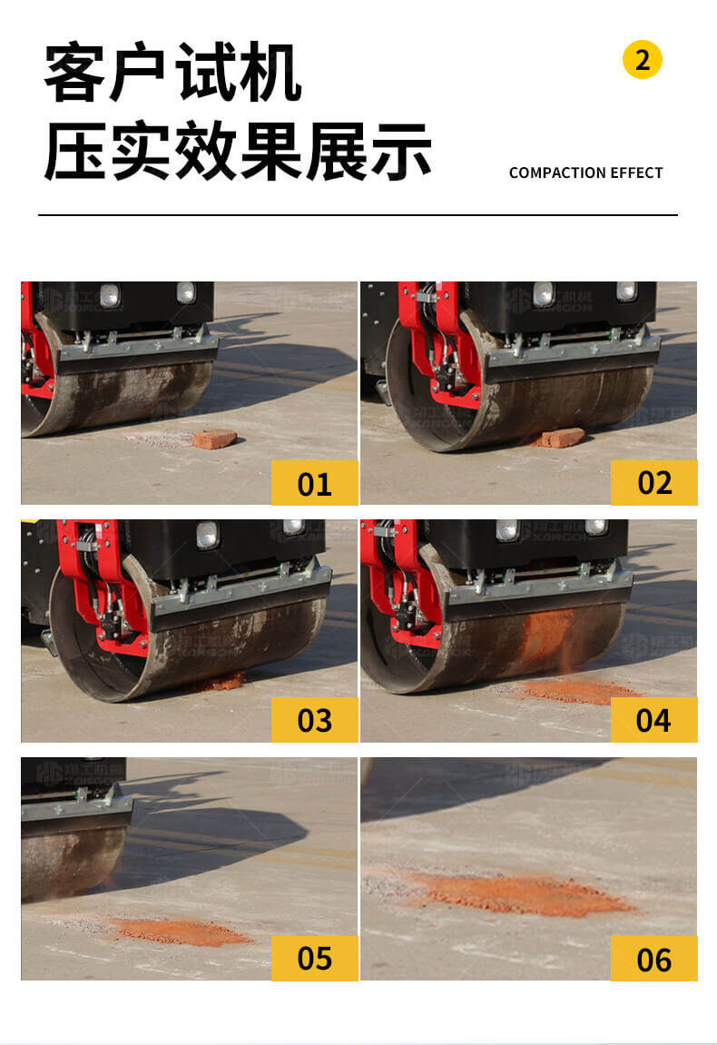 采用進(jìn)口液壓系統(tǒng),雙驅(qū)雙振,前后輪可單獨(dú)調(diào)節(jié)振動(dòng),亦可同時(shí)振動(dòng)。液壓轉(zhuǎn)向,液壓驅(qū)動(dòng),液壓行走,液壓振動(dòng)。進(jìn)口英國(guó)鉑金斯柴油機(jī)三缸水冷四沖程,動(dòng)力強(qiáng)勁,性能穩(wěn)定。超快速度一小時(shí)可達(dá)12千米,無(wú)極變速。壓土,碎石,壓瀝青,壓回填土效果超乎想象。