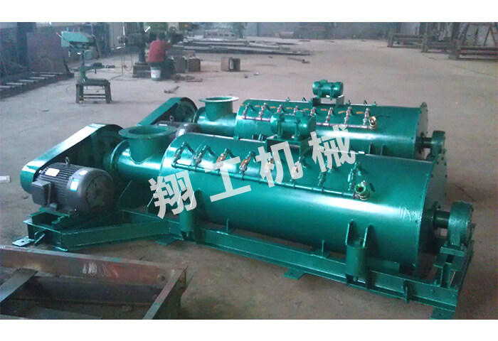 雙軸攪拌機利用兩根呈對稱狀的螺旋軸的同步旋轉,在輸送干灰等粉狀物料的同時加水攪拌,均勻加濕