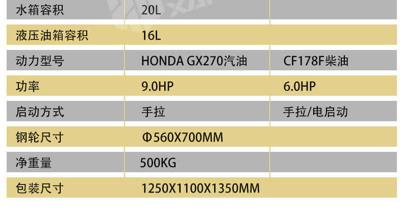 3. 傳動機構采用名優(yōu)液壓傳動系統(tǒng),換向方便, 使用壽命長; 4. 采用國際知名NSK軸承, MITSUBOSHI三角帶, 保證機器質量; 5. 柴油動力電啟動,輕便靈活。