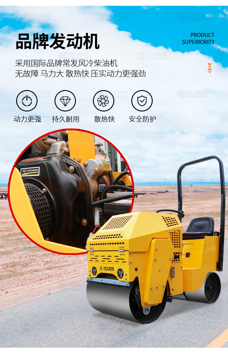 XYL-860座駕壓路機(jī)適用于各種溝槽沙土回填壓實(shí)、高層建筑地下室土方壓實(shí)、小區(qū)道路基礎(chǔ)壓實(shí)、各種草坪壓實(shí)、修補(bǔ)及各種小型工程的使用,解決了大型壓路機(jī)無(wú)法工作區(qū)域的壓實(shí)作業(yè)。