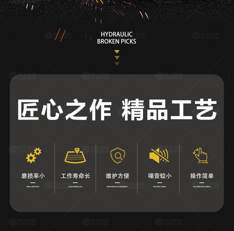 沒(méi)有哪個(gè)破碎鎬工具有液壓破碎鎬那樣的沖擊破碎能力。液壓破碎鎬的功率在所有鎬類工具中是高的,而其工作噪音也遠(yuǎn)比氣動(dòng)工具要小。