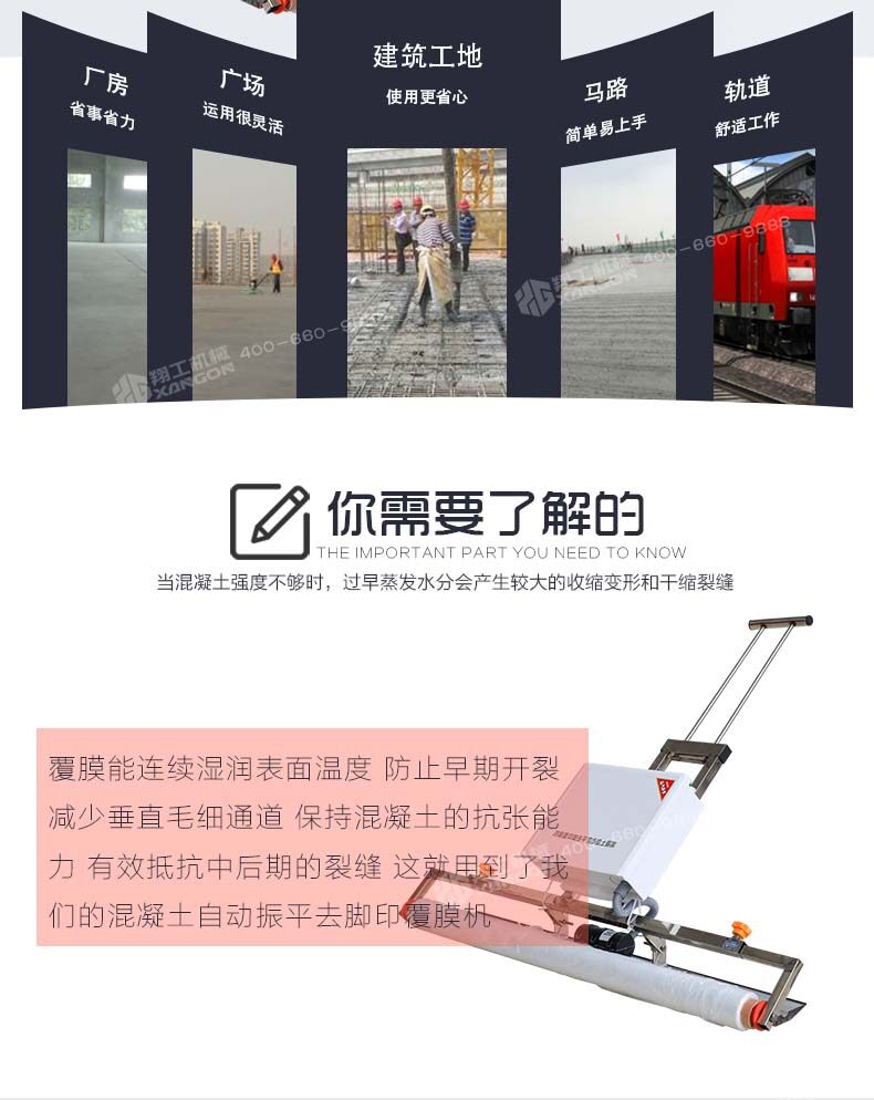 混凝土自動振平去腳印覆膜機(jī)主要是用于混凝土澆筑的工作中,此款設(shè)備澆筑后會進(jìn)行覆膜養(yǎng)護(hù),防止水分蒸發(fā)過快造成的脫水,混凝土自動振平去腳印覆膜機(jī)助力推動覆蓋薄膜養(yǎng)護(hù)普及進(jìn)程,保證混凝土施工效果。