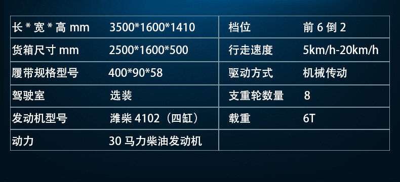 履帶運(yùn)輸車是專門提供復(fù)雜路況運(yùn)輸工作的機(jī)器,適用于普通運(yùn)輸車輛無法或者不適合通行的地方。履帶運(yùn)輸車以履帶代替了輪式行走,降低了對(duì)地面的損傷,同時(shí)履帶行走裝置降低了機(jī)器與地面的單位面積壓力,適用于山林、田地、沼澤、沙地、草地、雪地以及土質(zhì)松軟或氣候條件不太發(fā)的接近角和離地角。