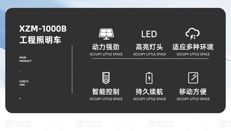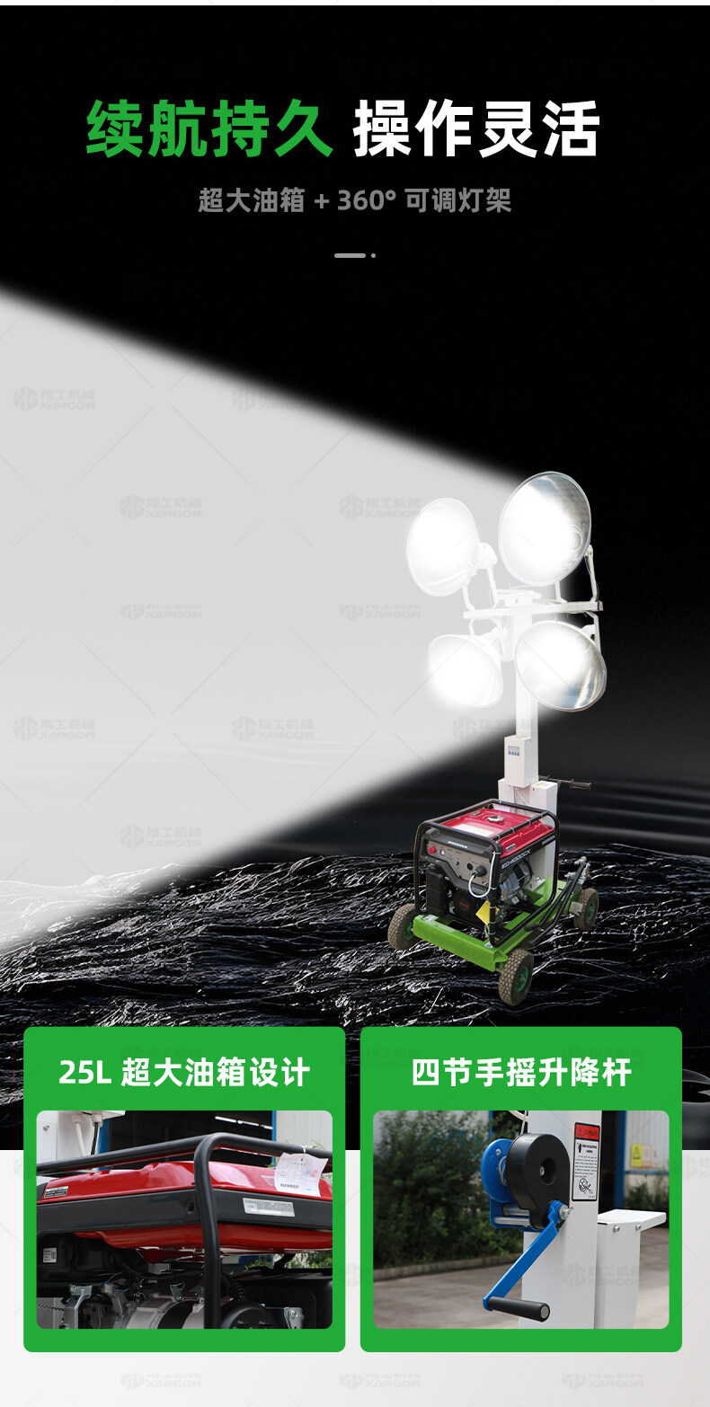 工程照明車XZM-1000B用于體育場(chǎng)館、機(jī)場(chǎng)、碼頭等大型公共場(chǎng)所,公路、鐵路、電力等緊急搶險(xiǎn)現(xiàn)場(chǎng),露天采礦現(xiàn)場(chǎng),以及防洪防汛、搶險(xiǎn)救災(zāi)現(xiàn)場(chǎng)等其它需要緊急備用光源、電源的場(chǎng)合