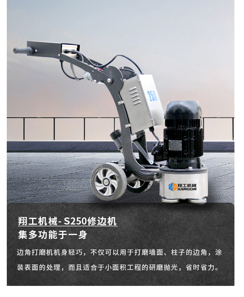 250拋光修邊機(jī)也叫混凝土地坪邊角機(jī),適合邊角、小面積打磨,機(jī)動(dòng)靈活,使用方便,下面帶大家來(lái)了解一下這款產(chǎn)品詳情。