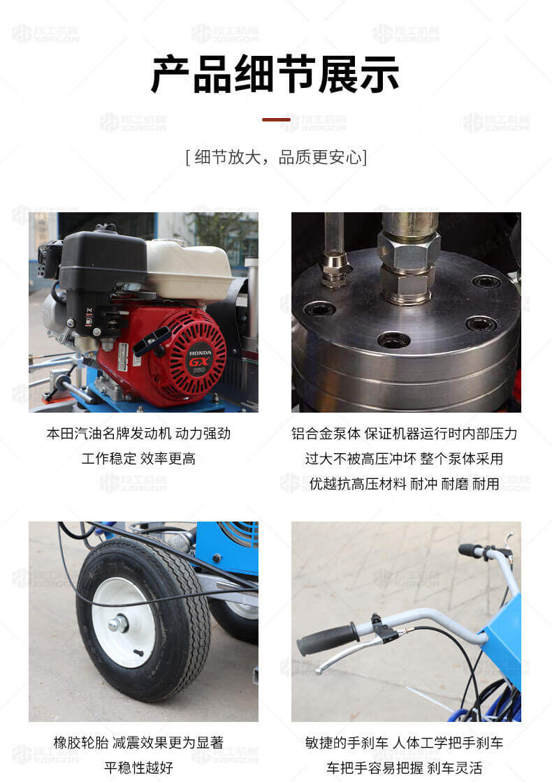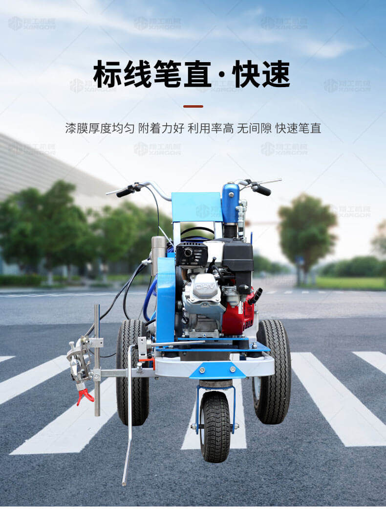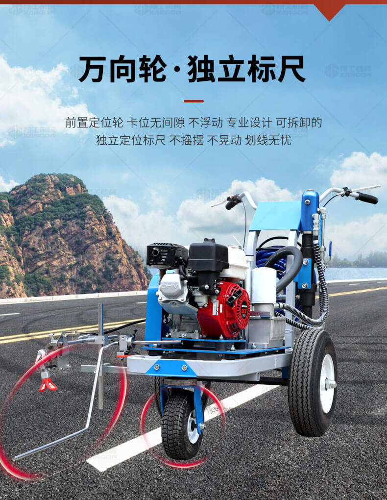 道路劃線機(jī)有冷噴式和熱熔式兩大類,冷噴式操作方便,施工快捷,可連續(xù)快速施工,越來越受到用戶青睞。熱熔式要帶上熱熔高溫爐等諸多輔助設(shè)施,施工時(shí)要間歇地從熱熔高溫爐取料,施工速度很慢,操作便捷性不夠且效率低,但一次成膜較厚。目前,比較常用的是冷噴手推式劃線機(jī),它可運(yùn)用于一般公路中小工程,運(yùn)用于廠區(qū)或地下室小工程劃線施工。