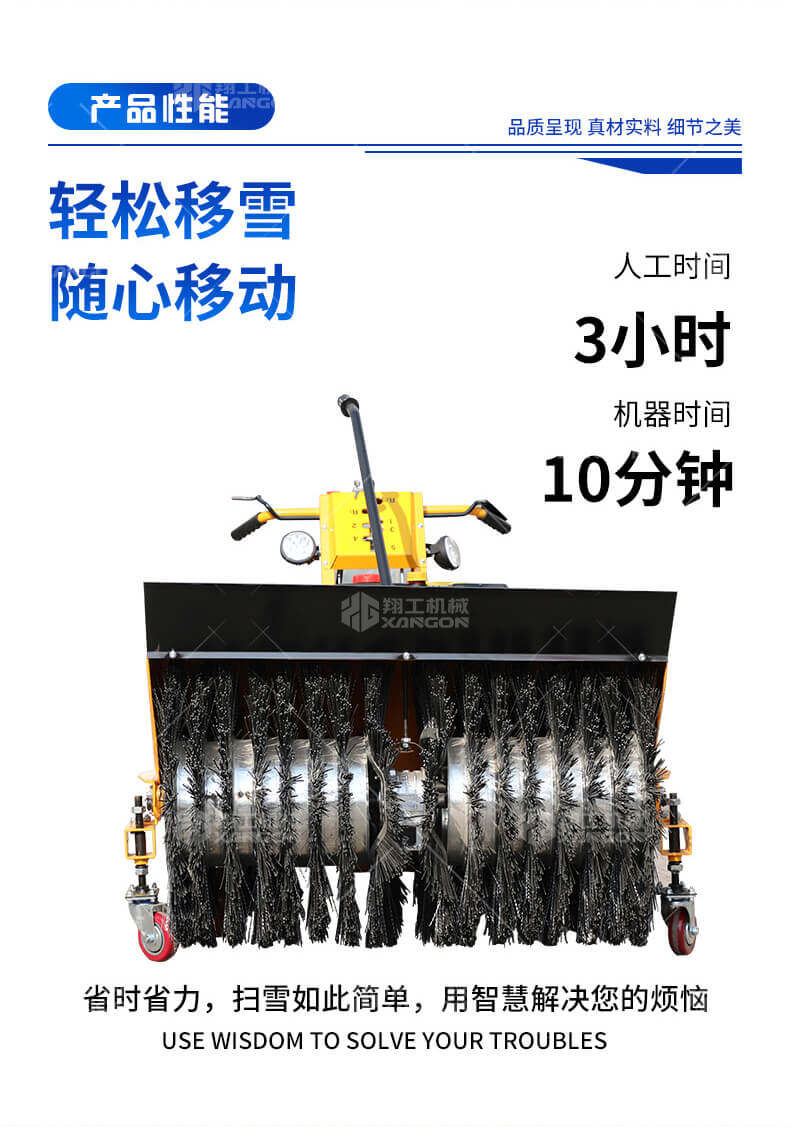 自行走多功能掃雪機(jī)是一款用于道路、廣場(chǎng)等大區(qū)域面積積雪清掃的滾刷式掃雪機(jī)。該滾刷具有極高的耐磨度,即使針對(duì)極度不平道路積雪的清掃也擁有高效的潔凈效果。該機(jī)小巧靈活,價(jià)格低、功能多,節(jié)省勞動(dòng)力,一臺(tái)機(jī)器頂10個(gè)-20個(gè)人工。是機(jī)關(guān)、單位、學(xué)校、停車場(chǎng)、廣場(chǎng)、物業(yè)小區(qū)、花園、非機(jī)動(dòng)車道等廣泛選用的冬季清雪機(jī)械。一機(jī)多用型,經(jīng)濟(jì)實(shí)用!