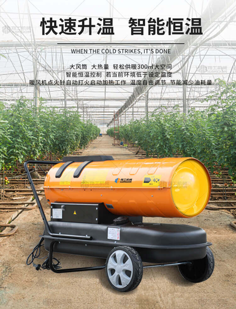 燃油暖風(fēng)機(jī)可對(duì)禽畜取暖,育雛取暖,花卉養(yǎng)殖,大棚蔬菜瓜 果,商場(chǎng),車間,展會(huì)進(jìn)行取暖。