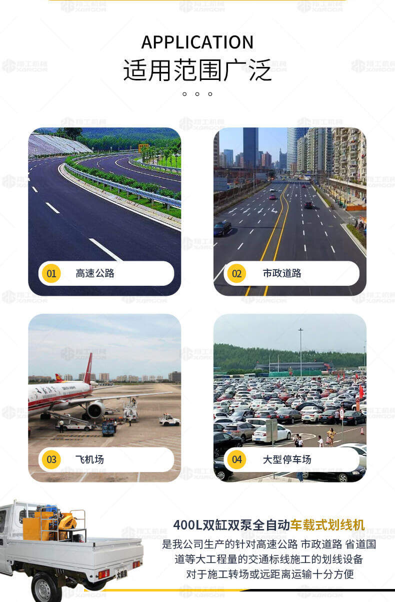 400L雙缸雙泵全自動車載式劃線機(jī)是我公司生產(chǎn)的針對高速公路、市政道路省道國道等大工程量的交通標(biāo)線施工的高效畫線設(shè)備。