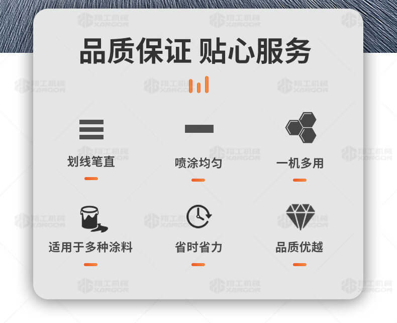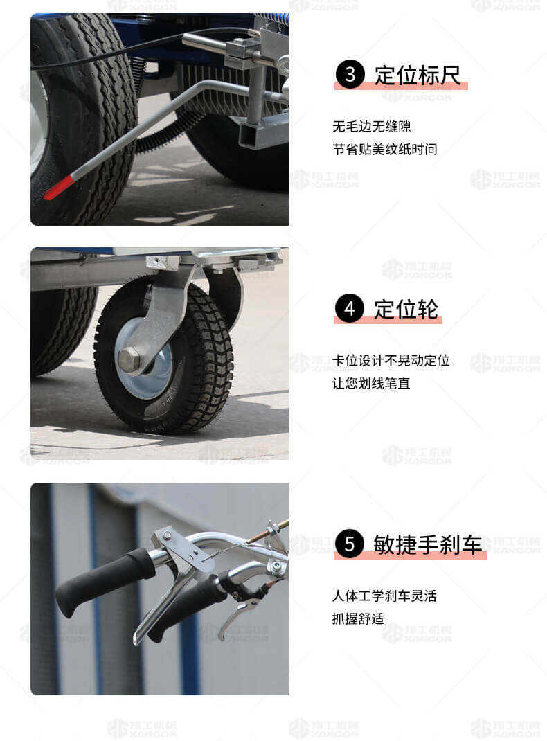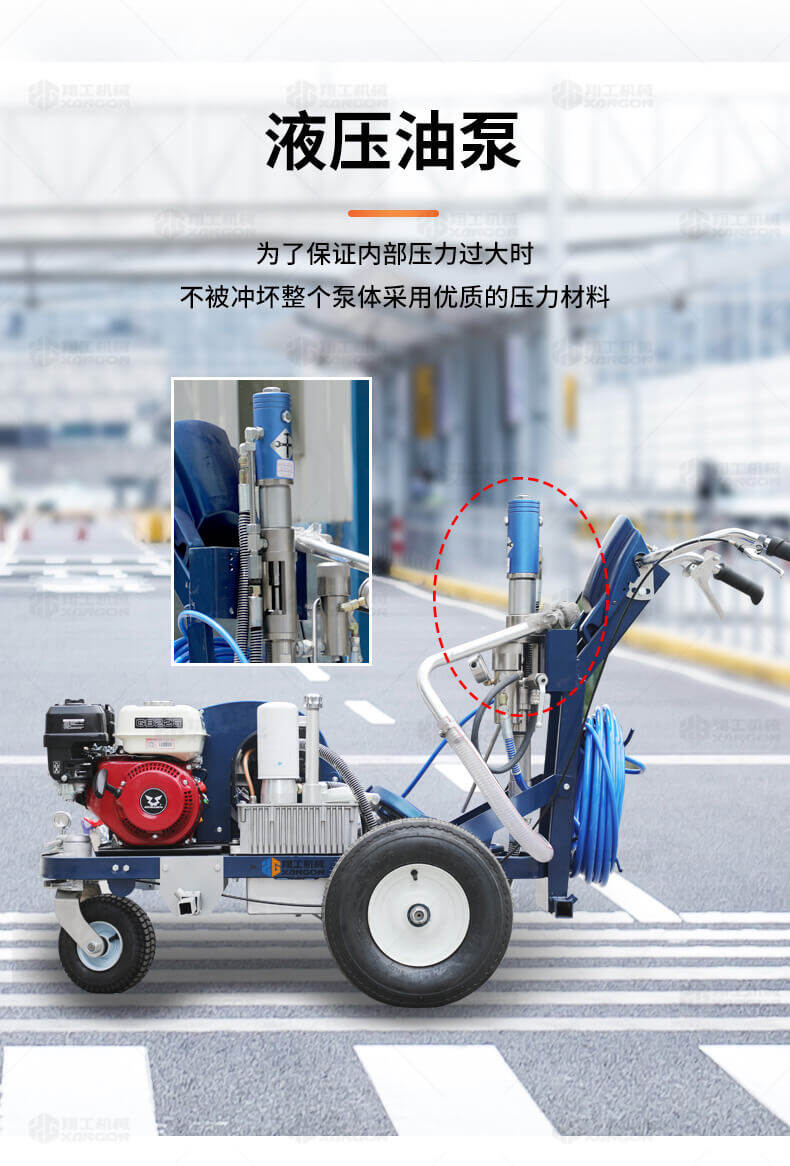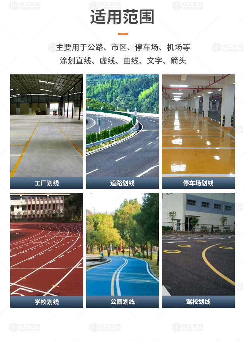 主要用于公路、市區(qū)、停車場(chǎng)、機(jī)場(chǎng)等涂劃直線、虛線、曲線、文字、箭頭等。具有劃線效果好、速度快、效率高、適用范圍廣、使用方便等優(yōu)點(diǎn)。