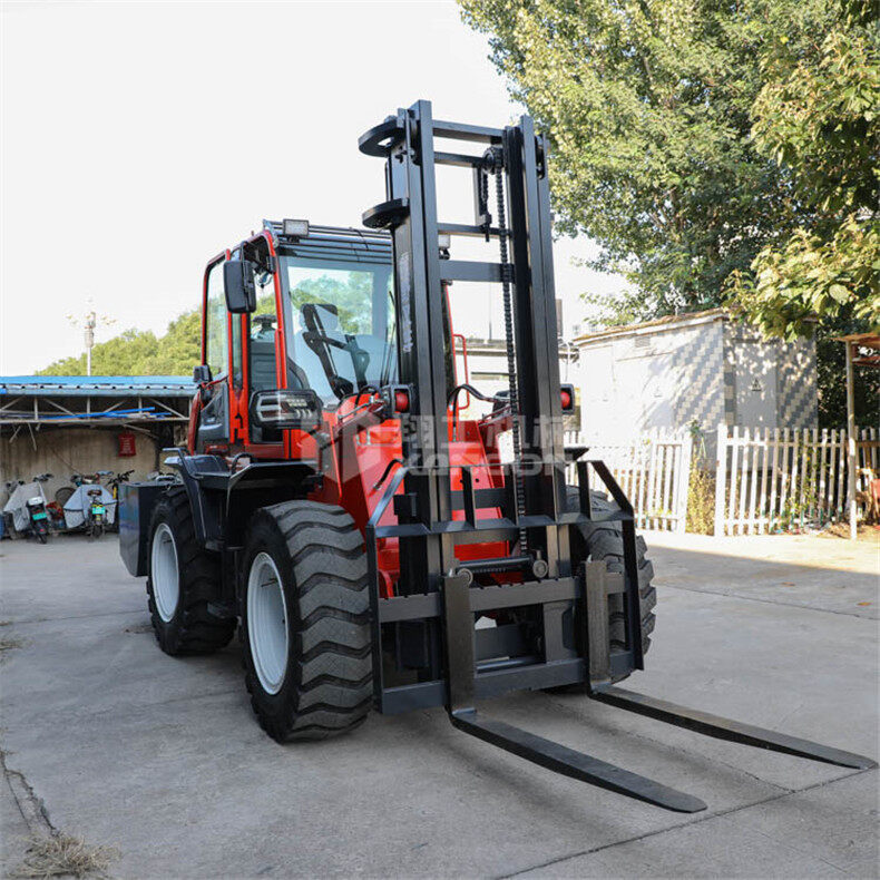 越野叉車可以在坡地和不平地面上進(jìn)行貨物裝、卸、堆垛及搬運作業(yè),具有良好的機(jī)動性、越野性可靠性。其功能多樣,可搭配側(cè)移器、調(diào)距叉、旋轉(zhuǎn)器、軟包夾、推出器、側(cè)翻叉、側(cè)翻斗、起重臂等工具完成不同的工作。