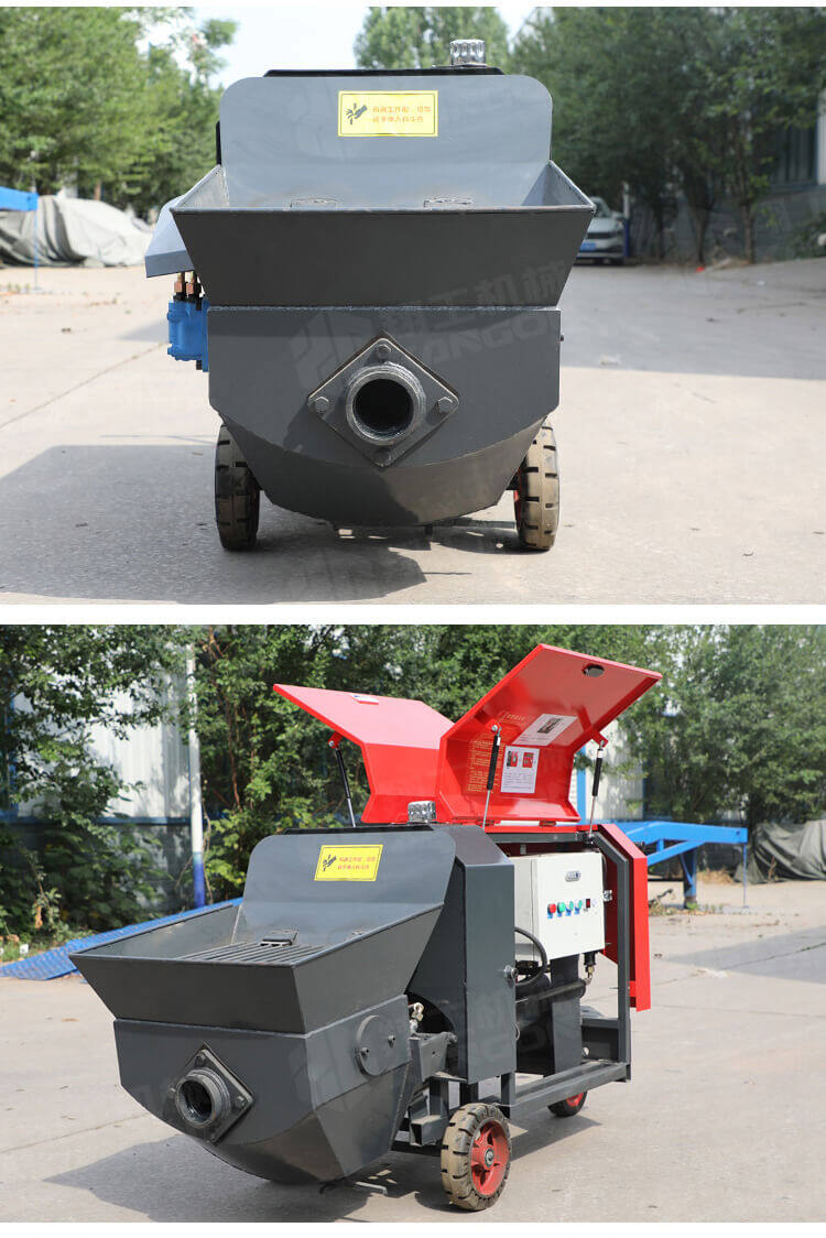 本產(chǎn)品為手推式行走臥式造型輸送泵,料斗帶攪拌功能,可泵送機(jī)制砂;風(fēng)冷散熱,散熱效果好;集成芯片控制箱,多條備用線路獨(dú)立設(shè)計(jì),不用擔(dān)心控制系統(tǒng)問(wèn)題;操作部件采用24v 安全感應(yīng)電壓,安全可靠;S 彎采用兩個(gè)單向油缸,速度均勻。