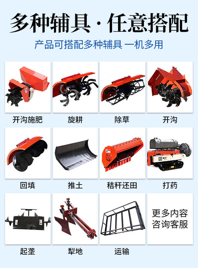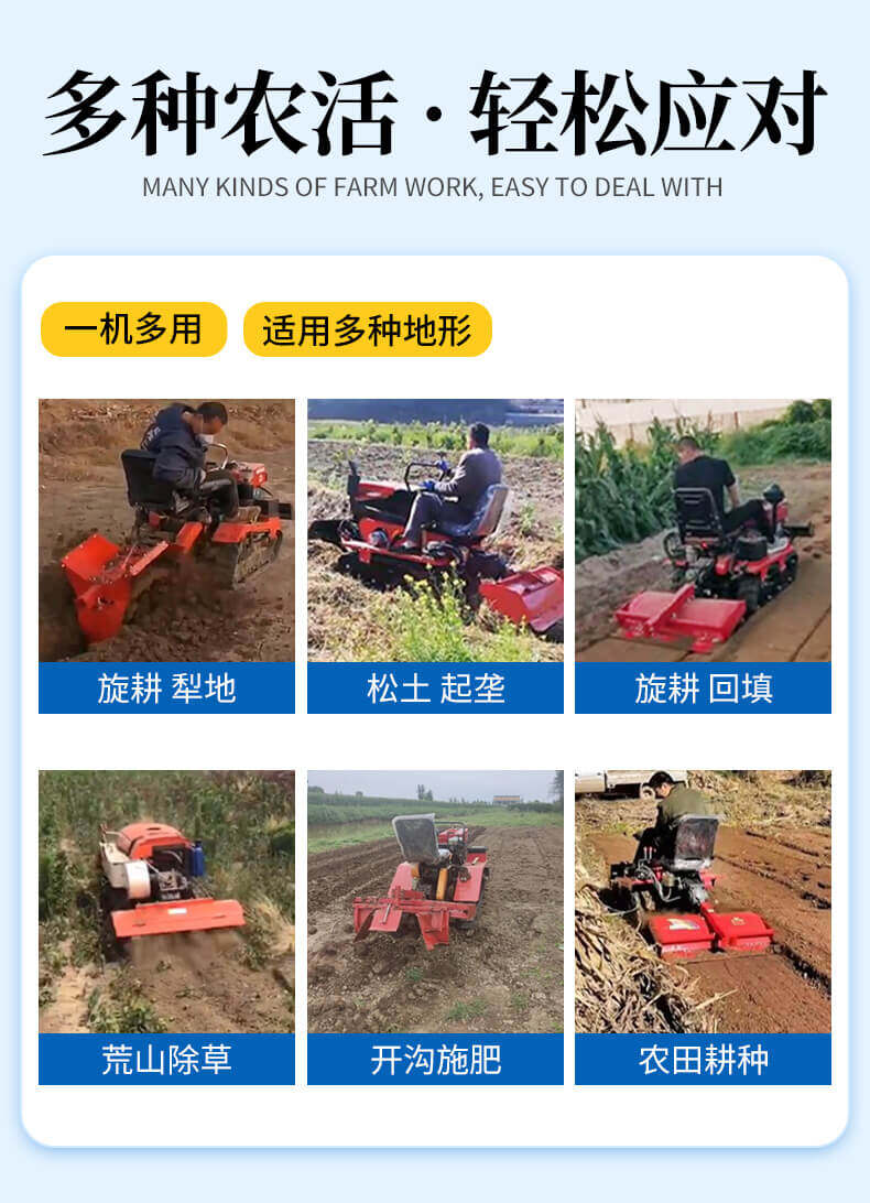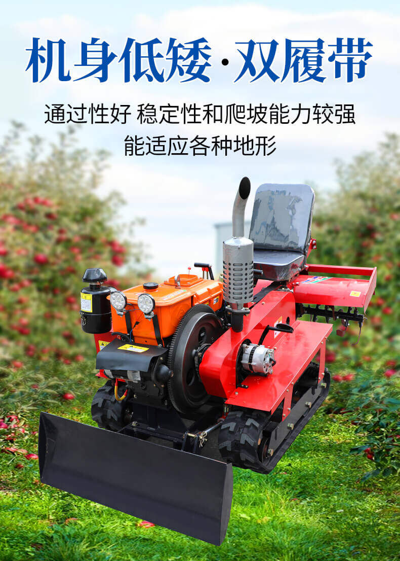 25馬力旱地履帶旋耕機(jī)適用于大面積、小面積清除雜草,適用于果園、農(nóng)田、玉米地、山地的除草作業(yè),打藥/旋耕/犁地/開溝施肥/回填/除草/起壟都可以。