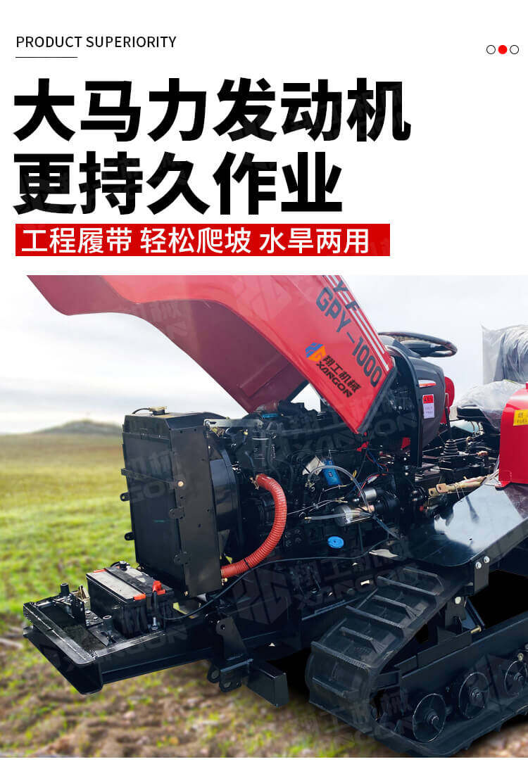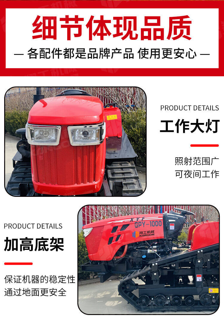 100馬力果園旋耕機(jī)液壓升降,爬坡能量強(qiáng),專為復(fù)雜地形設(shè)計(jì)。橡膠履帶接地壓力小,附著力強(qiáng),有效防止打滑,特別適用于水田、坡地及泥濘地塊。旋耕除草效果好,效率卓越,是規(guī)模化農(nóng)耕與高標(biāo)準(zhǔn)農(nóng)田建設(shè)的強(qiáng)勁動(dòng)力。