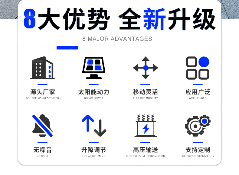 太陽能燈車采用高效光伏板與鋰電池組合,白天蓄電,夜間自動(dòng)照明,節(jié)能環(huán)保。配備高亮度LED燈,照射范圍廣,適用于道路施工、應(yīng)急搶險(xiǎn)、夜間作業(yè)等場(chǎng)景。移動(dòng)靈活,防水防塵,無需外接電源,續(xù)航持久。結(jié)構(gòu)堅(jiān)固,操作簡(jiǎn)便,是戶外臨時(shí)照明的理想選擇,兼顧經(jīng)濟(jì)性與實(shí)用性。