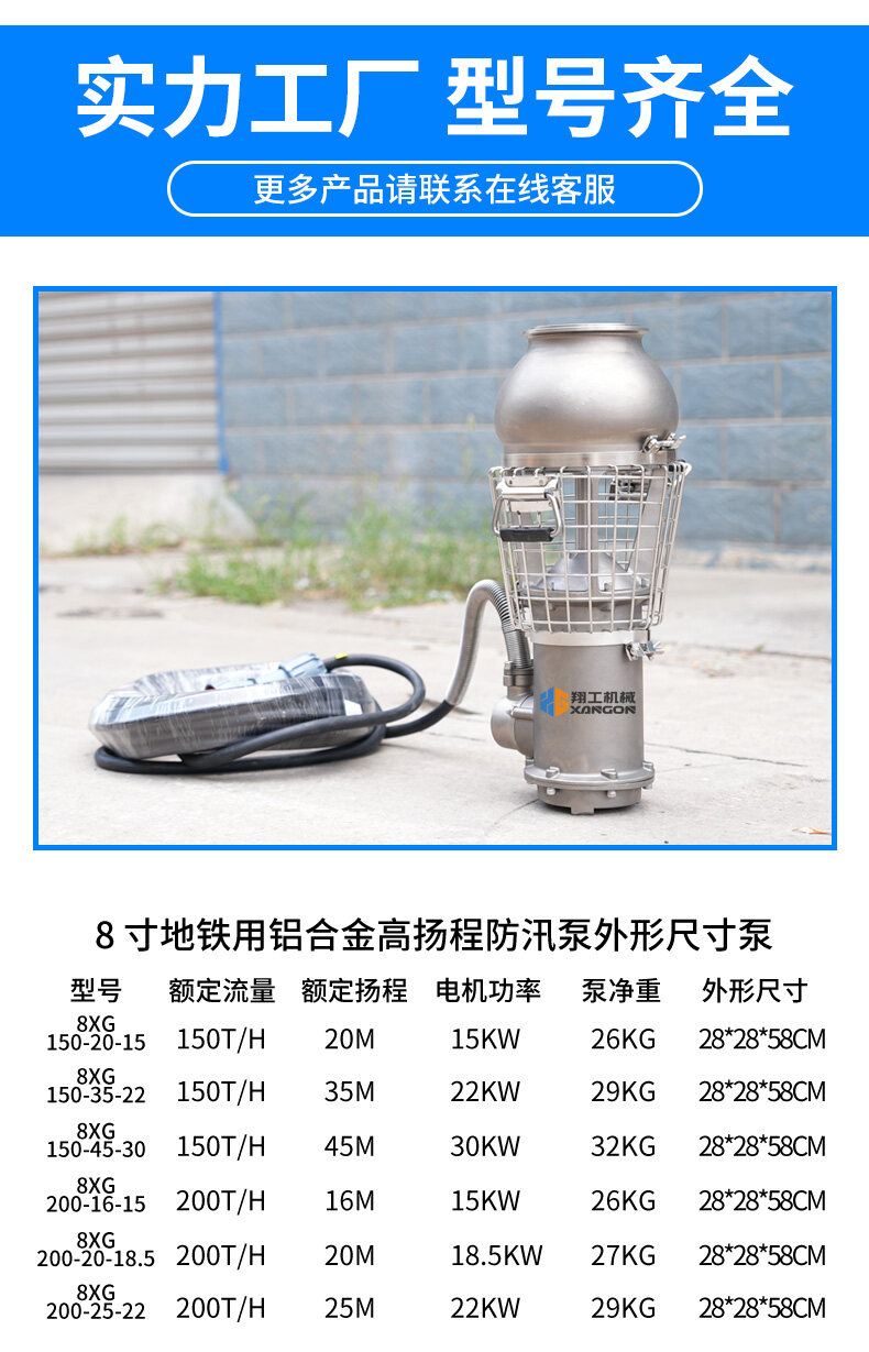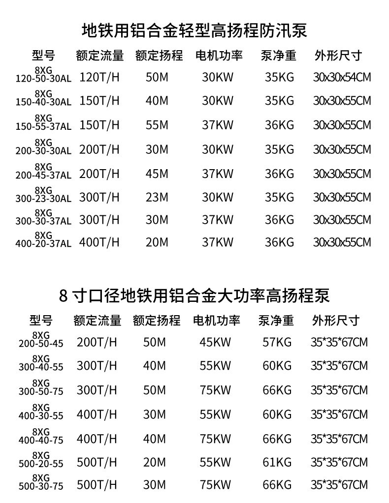 8寸大流量防汛泵,鋁合金輕量化設(shè)計,高效排水,抗腐蝕性強(qiáng),適用于地鐵、隧道等防汛搶險,移動便捷,應(yīng)急能力強(qiáng)。